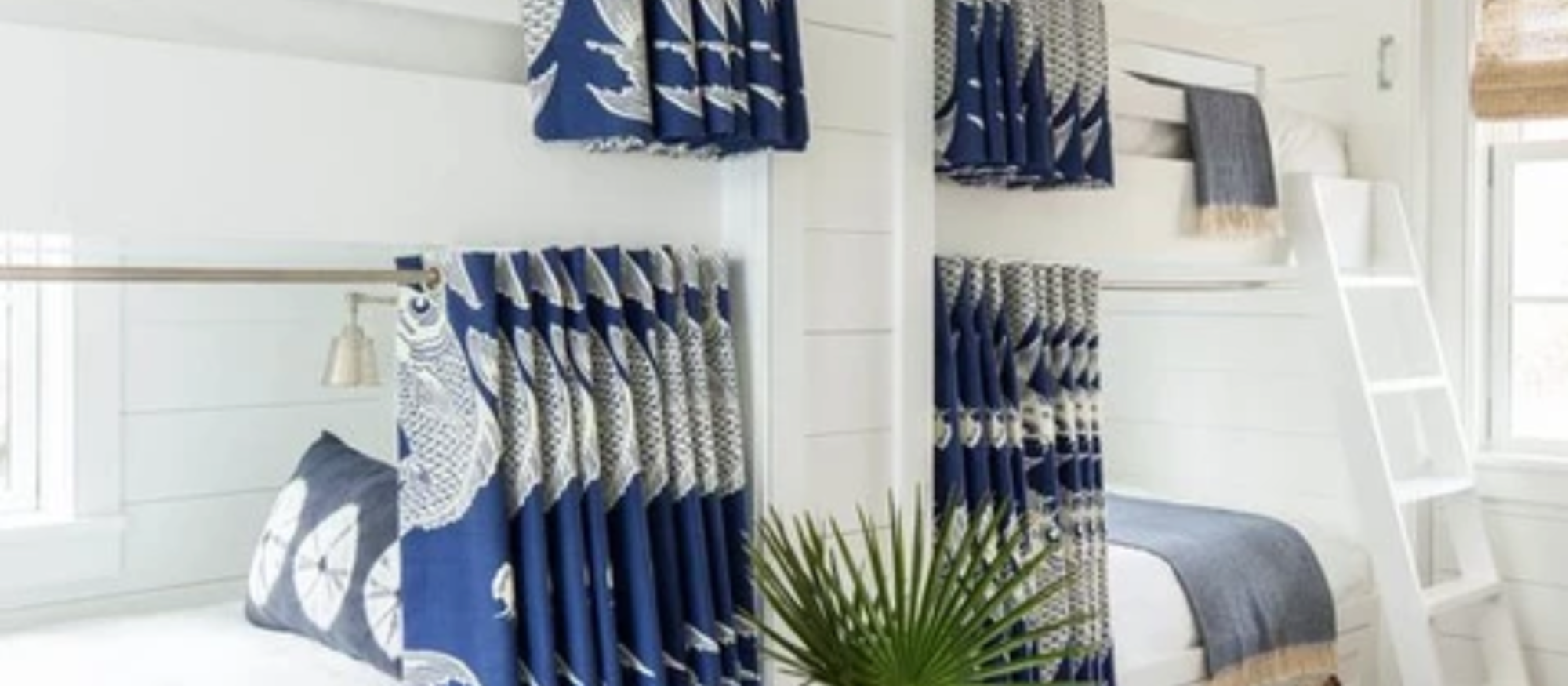 One idea we really love is to accessorize your bunk with privacy curtains. This will not only liven up the space, but it will also give each person a little privacy. A simple rod and short curtain will do the trick and can do wonders for your small space. Choose a pattern that plays off of the other colors in the room to tie everything together.