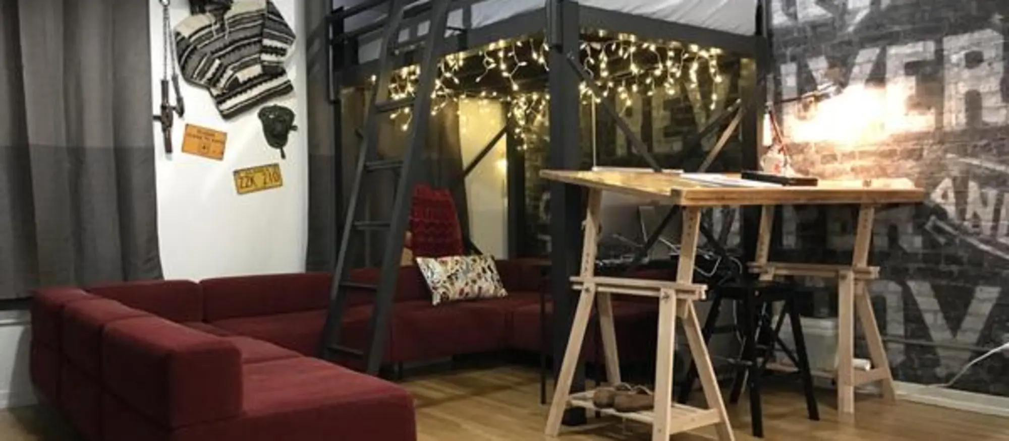 With a 13’ ceiling, Anthony decided to take his mattress to the sky, using the space below as a lounge for watching TV and hanging with friends. We customized the loft bed by making the clearance extra high - 6 feet to be exact - which is enough for Anthony to comfortably walk underneath and it just really opens up the space since his ceilings are so tall.