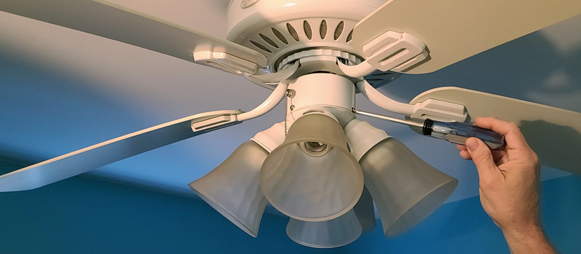 Luckily, I knew a guy. My father-in-law just happened to be a highly experienced electrician enjoying retirement, meaning he had the exact knowledge we needed and some spare time to share it with us, so we enlisted him to come help us remove the fan and install a new lighting fixture to make it easier and safer to access the loft bed.