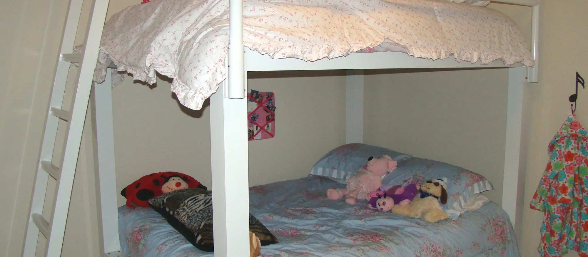 A second option you may want to consider is a ladder storage unit (like our optional staircase accessory). Not only does it give your children a place to store their toys or personal items, but it also takes up very little floor space. Make sure to utilize as much corner storage space as your room will allow for, as this helps to make the room appear more spacious.