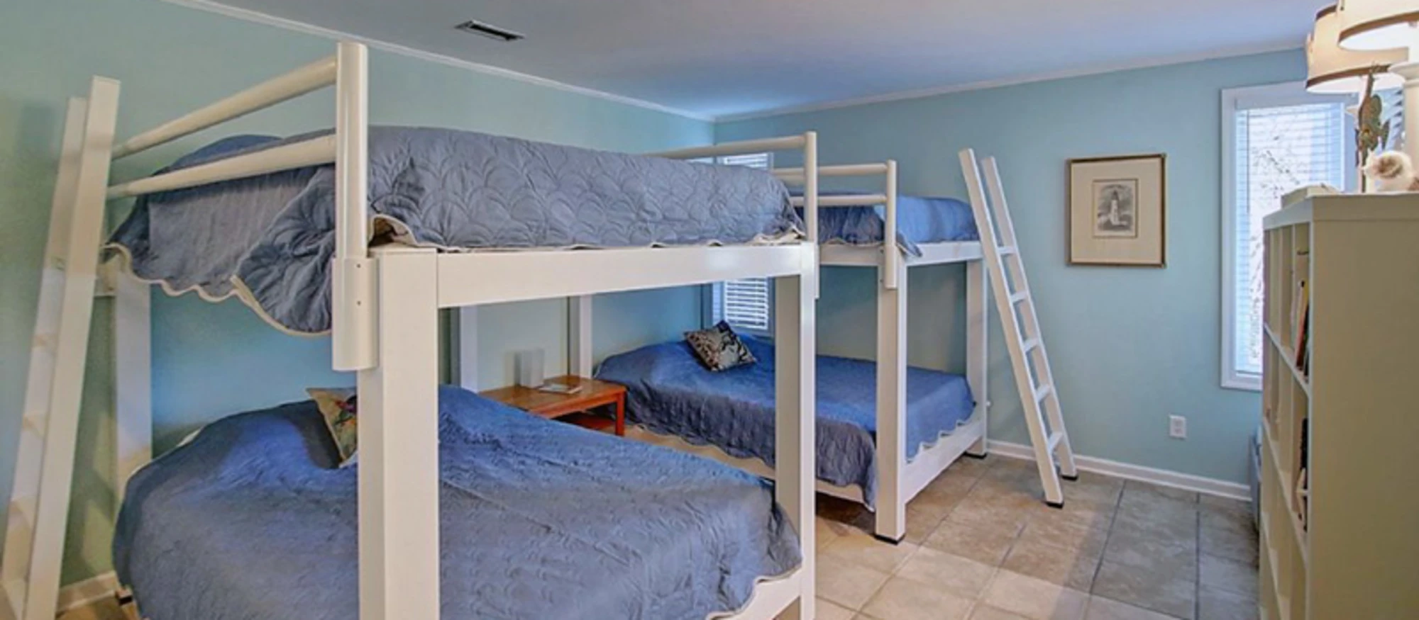 “Whether it is children building forts with blankets or adults who prefer to have their own large beds, the bunks regularly generate rave reviews in our guest book,” said Joyce. “One Christmas, a local family of six rented our home so each of their four college-age kids would have their own bed, while still getting to enjoy the fun of staying close together during the holiday break. They even brought in a live tree and decorated it with sea shells. This is just one of many great memories that we have of our guests finding creative ways to use our bunk bed room.”