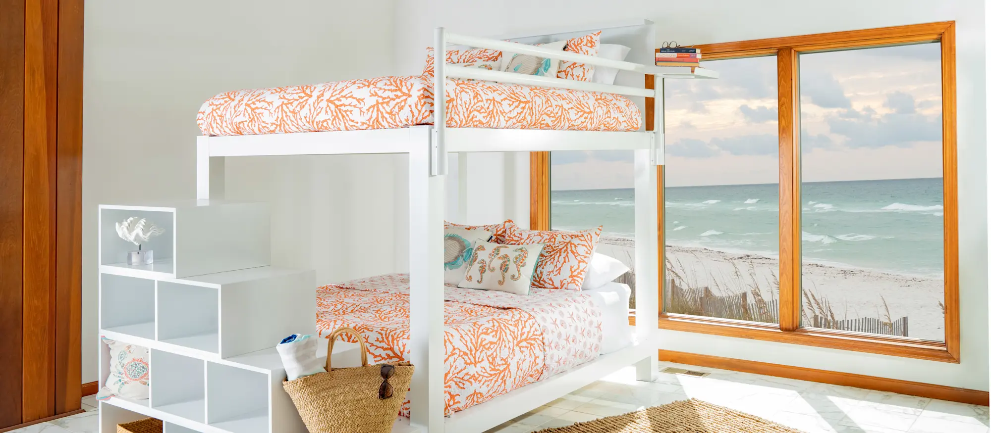 The next question is of course safety. While we’ve already discussed the durability of our beds, touching on the safety aspect is important to assure that your rental home will be outfitted with the best possible safety option. While all of our bunk beds do have a ladder option, if you’re worried about climbing up and down a ladder every night, a staircase can be a better solution. This will it make it easier to ascend and descend from the top mattress and will give you peace of mind on the accessibility front. Rest assured that you can also add guard rails to both the sides and the ends of your bed. Even as adults we worry about rolling over and falling off, so this gives you an added safety option.